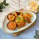 Traditional Fried Rice, Chicken Satay, Grilled Chicken, Egg Roll and Pickled Pineapples.